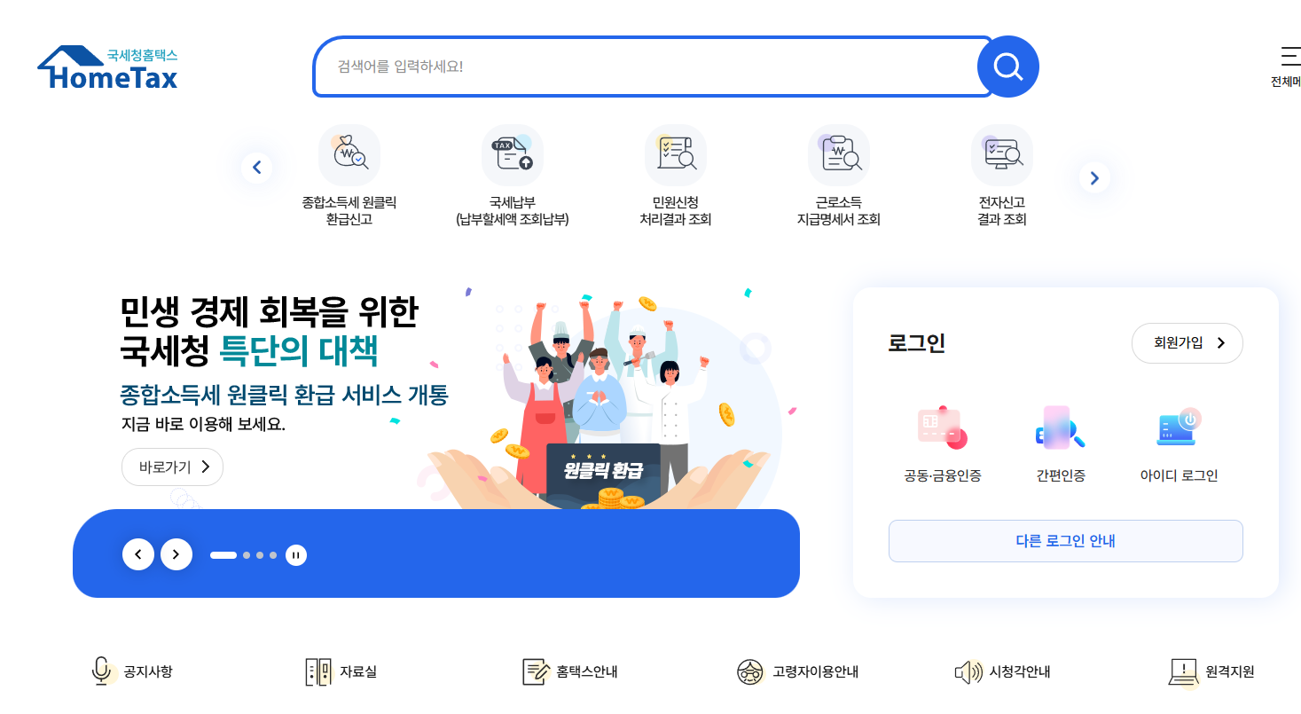 ✔ 홈택스 → 숨은 세금 환급금 찾기!